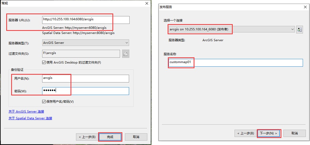 進入[常規(guī)]窗口,設(shè)置服務(wù)器URL,服務(wù)器類型、過渡文件夾保持默認(rèn),輸入用戶名、密碼,點擊【完成】,即可創(chuàng)建一個連接,并返回[發(fā)布服務(wù)]窗口。