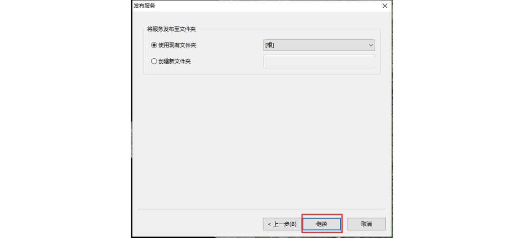 在[發(fā)布服務(wù)]窗口,選擇剛創(chuàng)建的連接,輸入服務(wù)名稱,點擊【下一步】。