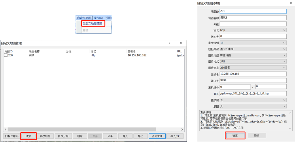 各設(shè)置項(xiàng)的說明請參考文檔《如何在奧維中啟用WEB瓦片服務(wù)》中的《3.2.1. URL格式》相關(guān)說明,這里不予贅述。