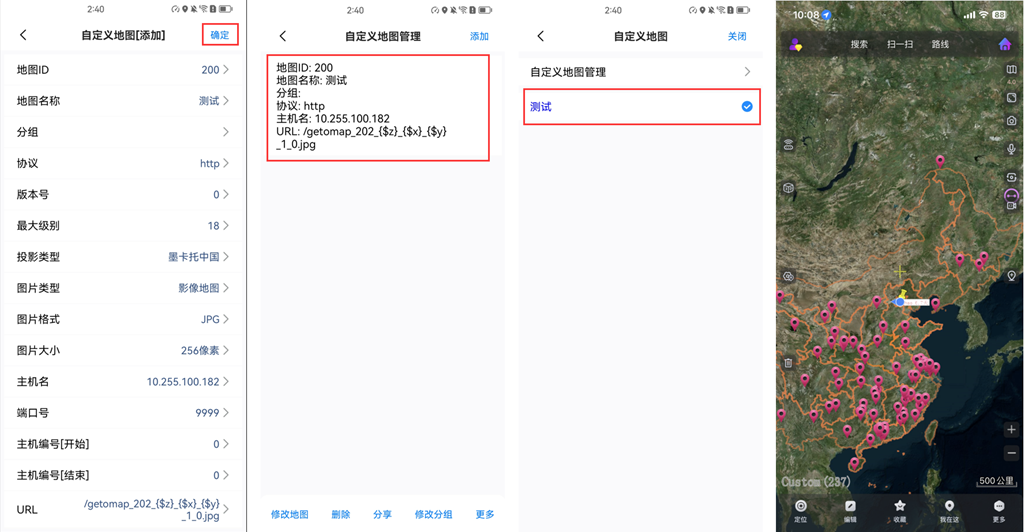 點(diǎn)擊[自定義地圖]菜單,選擇剛添加的圖層,即可顯示調(diào)取的地圖。第一次加載可能會(huì)比較慢,等待1分鐘。