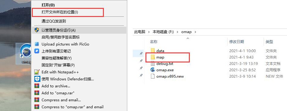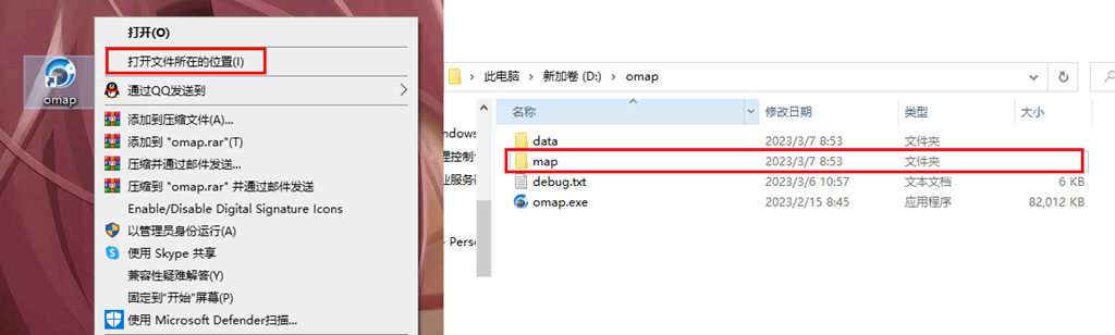 在客戶端電腦桌面,選中奧維圖標,點擊鼠標右鍵—>【打開文件所在的位置】,進入map文件夾下。