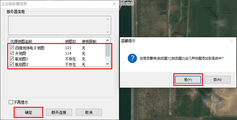 勾選需要添加到客戶端的地圖,點擊【確定】—>【是】,即可。