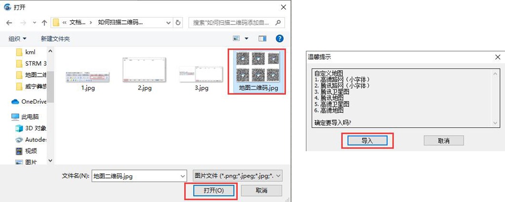 選中您的地圖二維碼文件,點(diǎn)擊【打開】—>【導(dǎo)入】,即可。