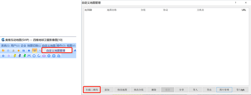 點(diǎn)擊[自定義地圖]—>【自定義地圖管理】—>【掃描二維碼】。
