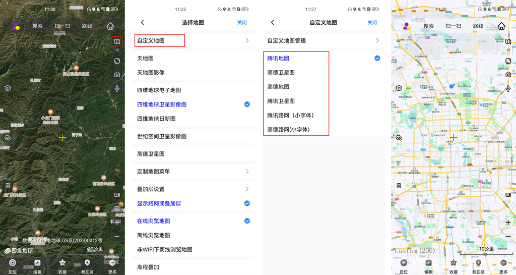 掃描完成后,點(diǎn)擊右上角的圖片1按鈕,點(diǎn)擊【自定義地圖】,勾選您需要看的地圖,即可瀏覽。