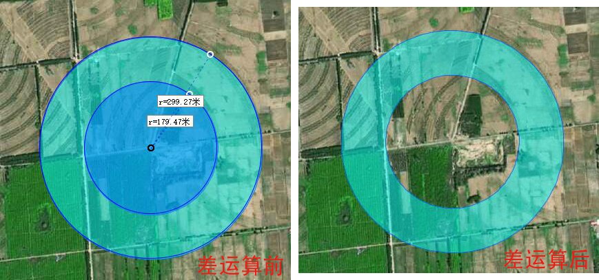 效果1:如下圖所示,兩個(gè)圓作“差”運(yùn)算(即“大圓減小圓”),小圓被刪除,得到“圓環(huán)”