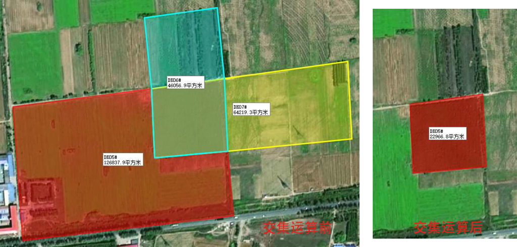 交集運(yùn)算:裁剪出多個(gè)圖形相交(即重疊)的區(qū)域,多余的部分被刪除。不相交的圖形無(wú)法執(zhí)行“交集”運(yùn)算。