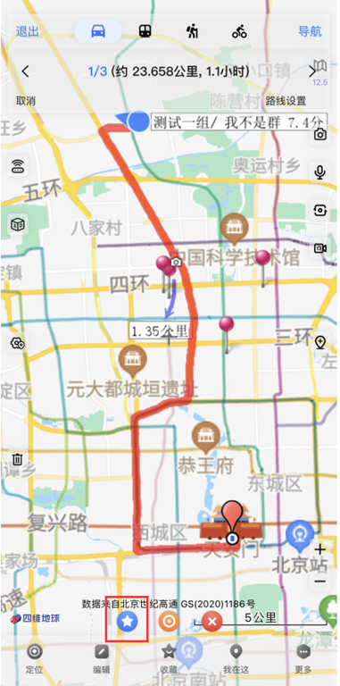 a、如需選擇收藏夾中的位置為途徑點(diǎn),點(diǎn)擊星型圖標(biāo),從收藏夾中選取途徑點(diǎn);