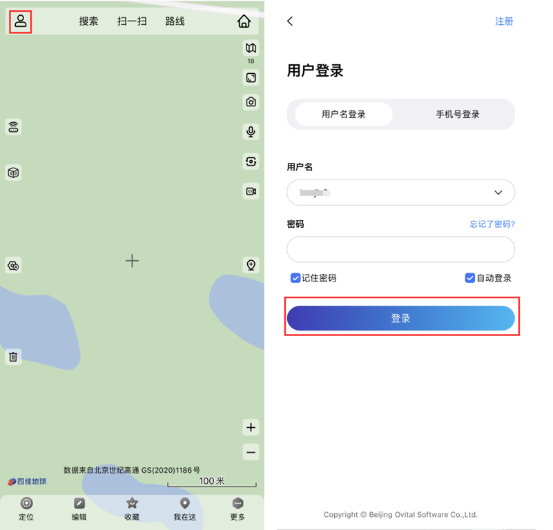 打開(kāi)奧維app,點(diǎn)擊左上角頭像,登錄用戶。