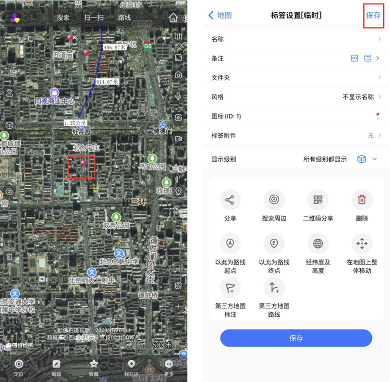 雙擊標(biāo)簽,進(jìn)入“標(biāo)簽設(shè)置”,在頁(yè)面下方選擇第三方地圖標(biāo)注或者第三方地圖路線,即可使用第三方地圖進(jìn)行導(dǎo)航