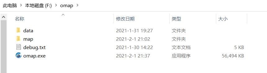 在[omap]目錄下有兩個(gè)文件夾,分別是data數(shù)據(jù)庫(kù)文件夾和map離線地圖數(shù)據(jù)文件夾。