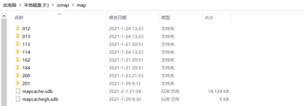 如果有下載離線地圖,map文件夾會(huì)自動(dòng)生成以3位數(shù)字命名的子文件夾,具體說(shuō)明如下: