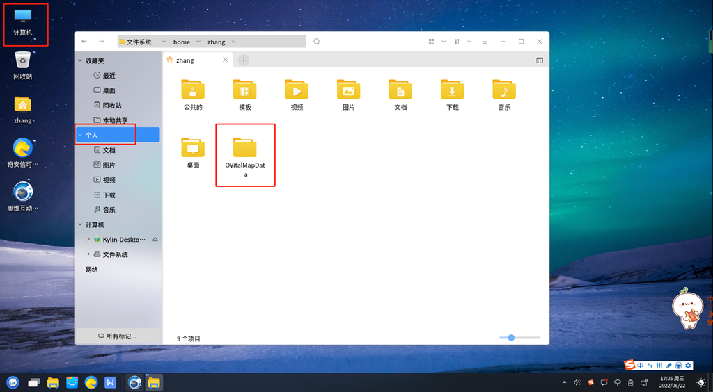 在電腦桌面上,點(diǎn)擊【計(jì)算機(jī)】→【個(gè)人】→【OvitalMapData】,即可進(jìn)入奧維安裝目錄。