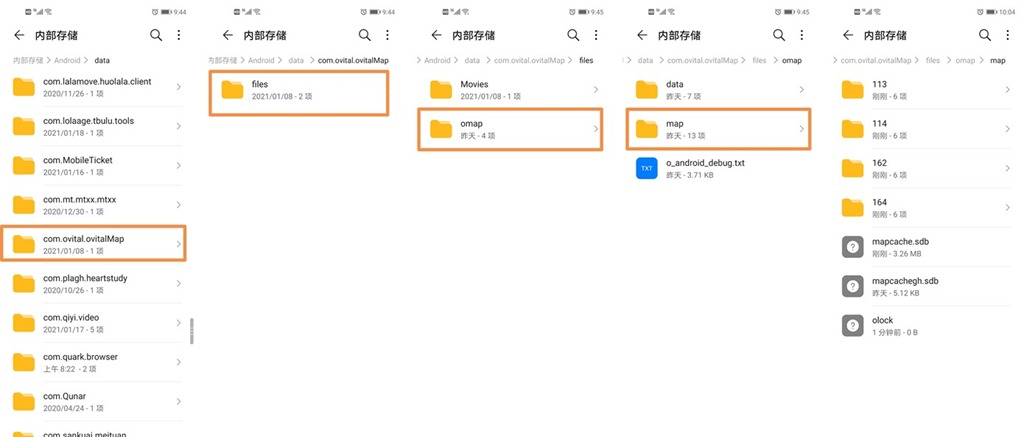 點擊【com.ovital.ovitalMap】→【files】→【omap】→【map】。