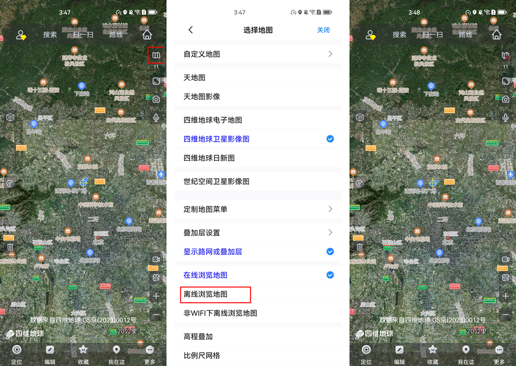 手機/平板端:在主界面上,點擊75_thumb按鈕,點擊【離線瀏覽地圖】,即可。
