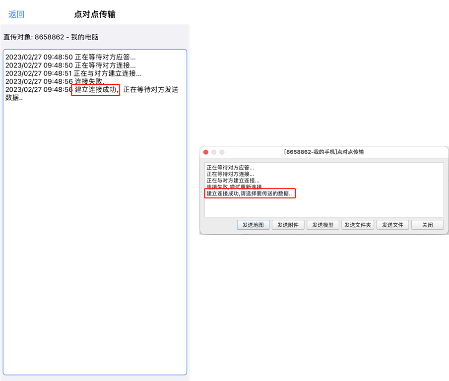(1)手機(jī)和電腦建立點(diǎn)對點(diǎn)傳輸