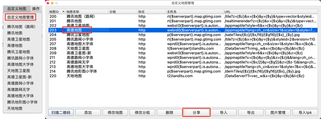 點(diǎn)擊[自定義地圖] →【自定義地圖管理】,勾選需要分享的圖層,點(diǎn)擊【分享】。