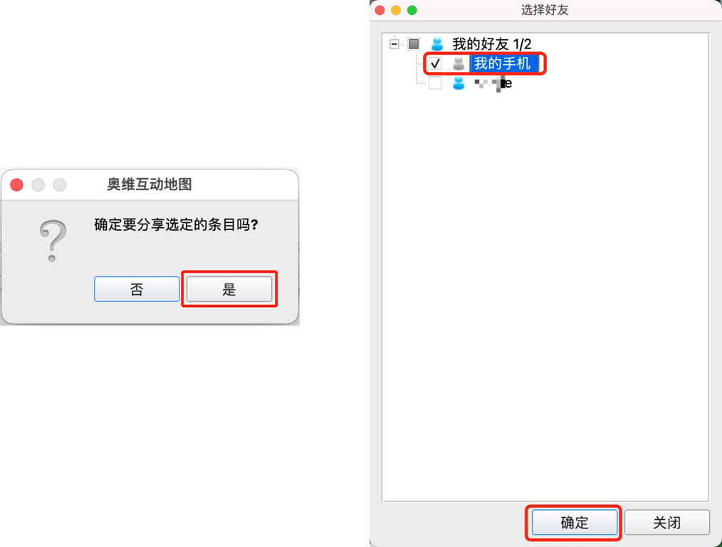 點(diǎn)擊【是】,勾選“我的手機(jī)”或者某好友,點(diǎn)擊【確定】。