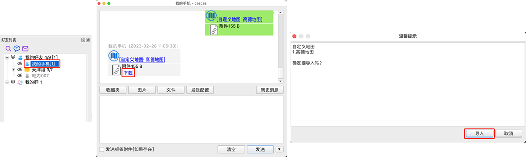 在電腦端登錄賬戶后,切換到[好友列表],雙擊“我的手機(jī)”或者分享圖層給您的好友。下載并點(diǎn)擊圖層文件,點(diǎn)擊【導(dǎo)入】,即可。