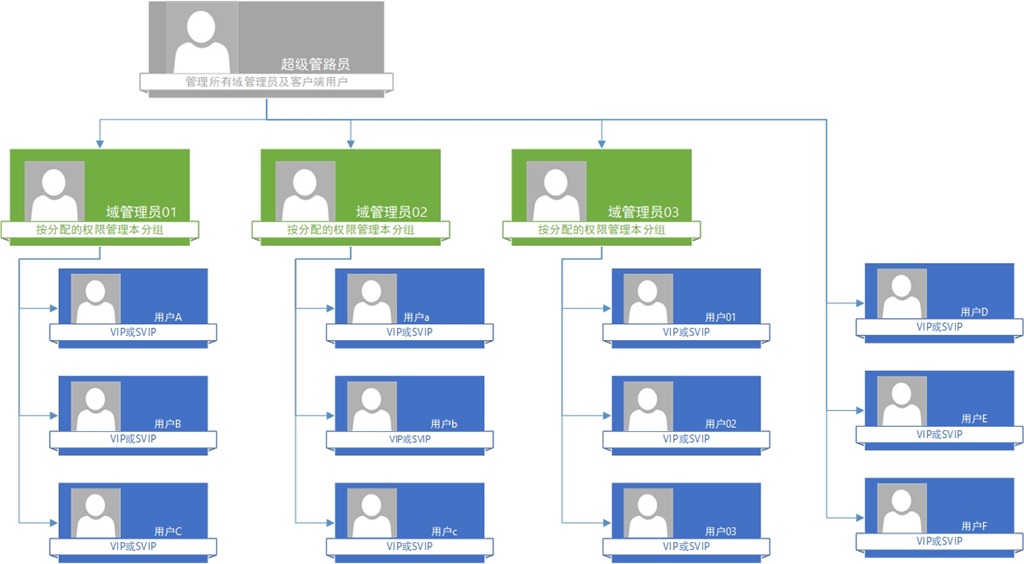 用戶讀取權限:域管理員可查看管理范圍內的用戶信息,可見用戶并可與用戶通信(接收發(fā)送消息);