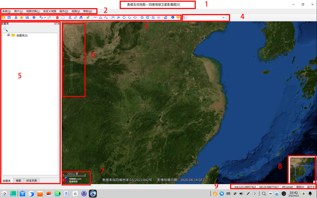 (1)標(biāo)題欄:包含軟件名稱、當(dāng)前綁定機(jī)器VIP等級(jí)、地圖類型及其當(dāng)前顯示級(jí)別;當(dāng)用戶登錄奧維賬號(hào)和企業(yè)賬號(hào)時(shí),會(huì)增加顯示當(dāng)前登錄的用戶名和企業(yè)用戶名。